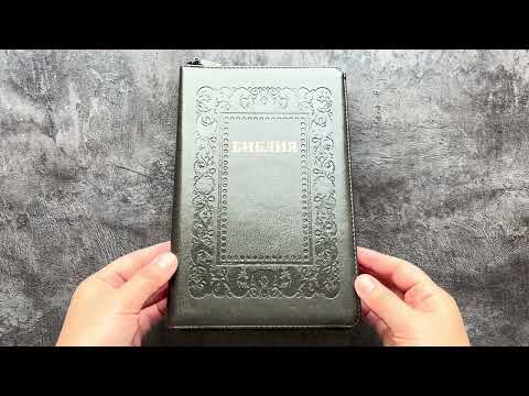 Библия (14,3х22см, искусств. кожа, серый, "Рамка барокко", молния, золотой обрез, индексы, 2 закладки, средний шрифт)