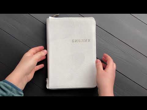 Библия (17х24см, белая кожа, индексы, золотой обрез, молния, крупный шрифт)