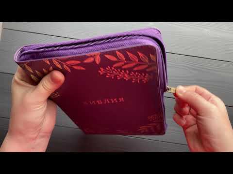 Библия семейная (17х24см, фиолетовая кожа, индексы, золотой обрез, две закладки, крупный шрифт)